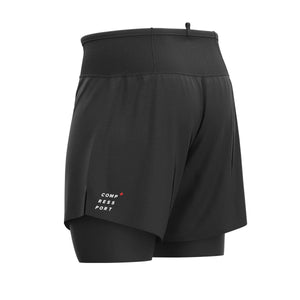 Lightweight combination of trail running shorts and soft tights with integrated pockets for flasks, gels and more.