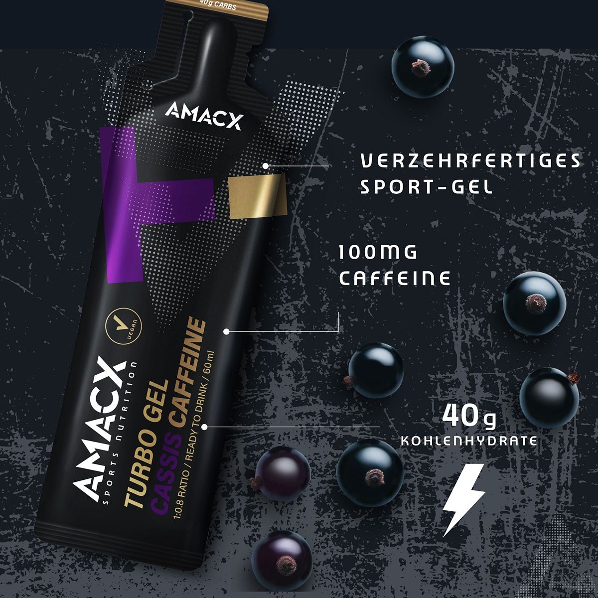 The Amacx Turbo Gel is a ready-to-use sports gel to which water has already been added. This gel contains multiple carbohydrate sources with a gradual release (carbohydrate ratio 1:0.8). Available in citrus and cassis caffeine flavors.