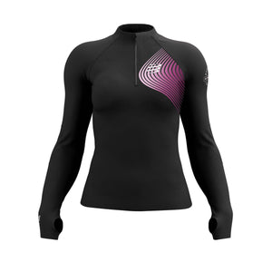 Long-sleeved, breathable trail running shirt with heat regulation specially tailored to the female body thanks to the body mapping system, which keeps you warm in cold temperatures.