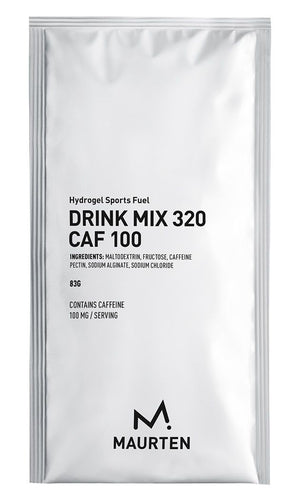 Drink Mix 320 Caf 100 von Maurten ist ein kohlenhydratbasierter Energielieferant für Ausdauersportler:innen auf Basis der Hydrogel-Technologie. Er enthält 80 Gramm Kohlenhydrate und 100 mg Koffein pro 500 ml Wasser.